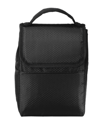 Set includes grommeted hemmed towel, mesh back cap, and lunch bag cooler.